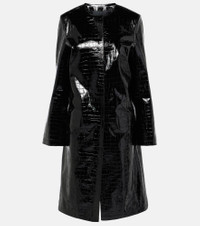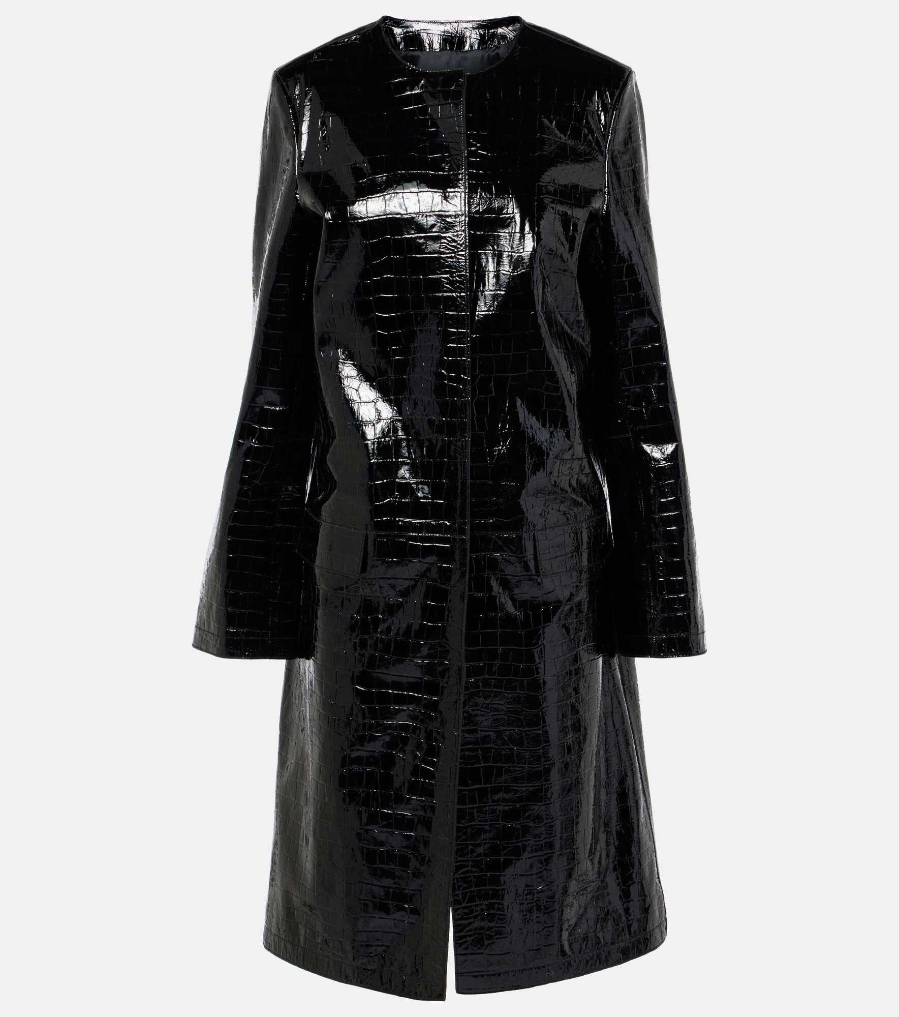 Black Croco-Embossed Leather Coat