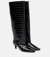 These knee-high boots from Totême are sure to gain cult-like status with their croc-effect leather and wide shaft. They're crafted in Italy with the label's signature square toes. Product Details - Lining: leather - Upper: lamb leather - Sole: leather insole and sole - Toe shape: square toe - Comes with a box - Made in Italy - Item number: P00617959 Size & Fit - True to size - Wide calf - Half sizes please take the next size down - European sizes - 5cm-2" heel (size EU 38) - 42cm-16.5" shaft height (size EU 38) - 41cm-16" shaft width (size EU 38) - shaft width measured on largest part of boot
