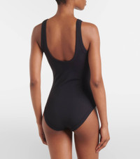 Curved ribbed-knit jersey swimsuit