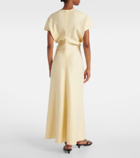 Define your dress code with styles from Toteme, a Stockholm-based brand dedicated to creating a modern uniform. This maxi dress boasts a lightly draped waist that creates a slouching effect. Product Details - Material: 67% viscose, 24% linen, 9% cotton - Care instructions: dry clean - Made in Portugal - Designer color name: Straw - Item color: yellow - Closure: zipped back - Item number: P01075293 Size & Fit - True to size - Cinched waist - Non-stretchy fabric - The model seen in the picture is 178cm-5'10" and wearing a size DE 34