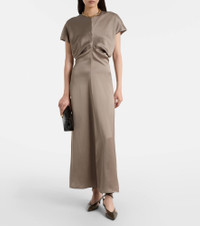 Clean, chic lines define this maxi dress from Toteme. An effortlessly elegant option for your special occasions, the style is made from lustrous satin panels with soft draping at the waist for movement. Product Details - Material: 100% viscose - Care instructions: hand wash - Made in China - Designer color name: Taupe - Item color: gray - Closure: concealed zipped back - Item number: P01102027 Size & Fit - True to size - Cinched waist - Non-stretchy fabric - The model seen in the picture is 178cm-5'10" and wearing a size DE 34