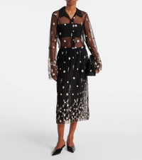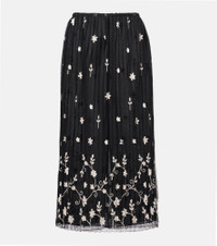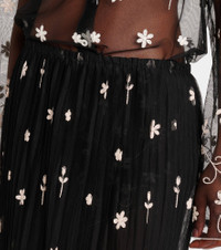 Embroidered plissé tulle midi skirt