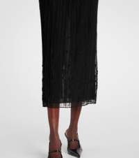 Embroidered plissé tulle midi skirt