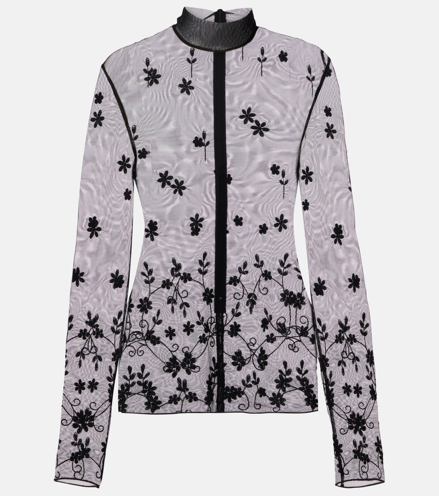 Embroidered tulle blouse