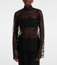 Floral tulle blouse black/black