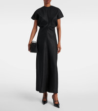 Define your dress code with styles from Toteme, a Stockholm-based brand dedicated to creating a modern uniform. This maxi dress boasts a lightly gathered waist that creates a slouching effect. Product Details - Material: 67% viscose, 24% linen, 9% cotton - Care instructions: dry clean - Made in Portugal - Designer color name: Black - Item color: black - Closure: zipped back - Item number: P01075286 Size & Fit - True to size - Cinched waist - Non-stretchy fabric - The model seen in the picture is 178cm-5'10" and wearing a size DE 34