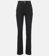 Define your dress code with styles from Toteme, a Stockholm-based brand dedicated to creating a modern uniform. These high-rise jeans are cut to a slim silhouette for a seamless addition to your everyday staples. Product Details - Material: 100% cotton - Care instructions: machine wash at 30 degrees - Made in Italy - Designer color name: Black - Closure: zip and button fastening - Pockets: five pockets - Item number: P01044746 Size & Fit - Fits small to size - we recommend trying one size larger - Non-stretchy fabric - Slim-leg - High-rise - The model seen in the picture is 178cm-5'10" and wearing a size 27