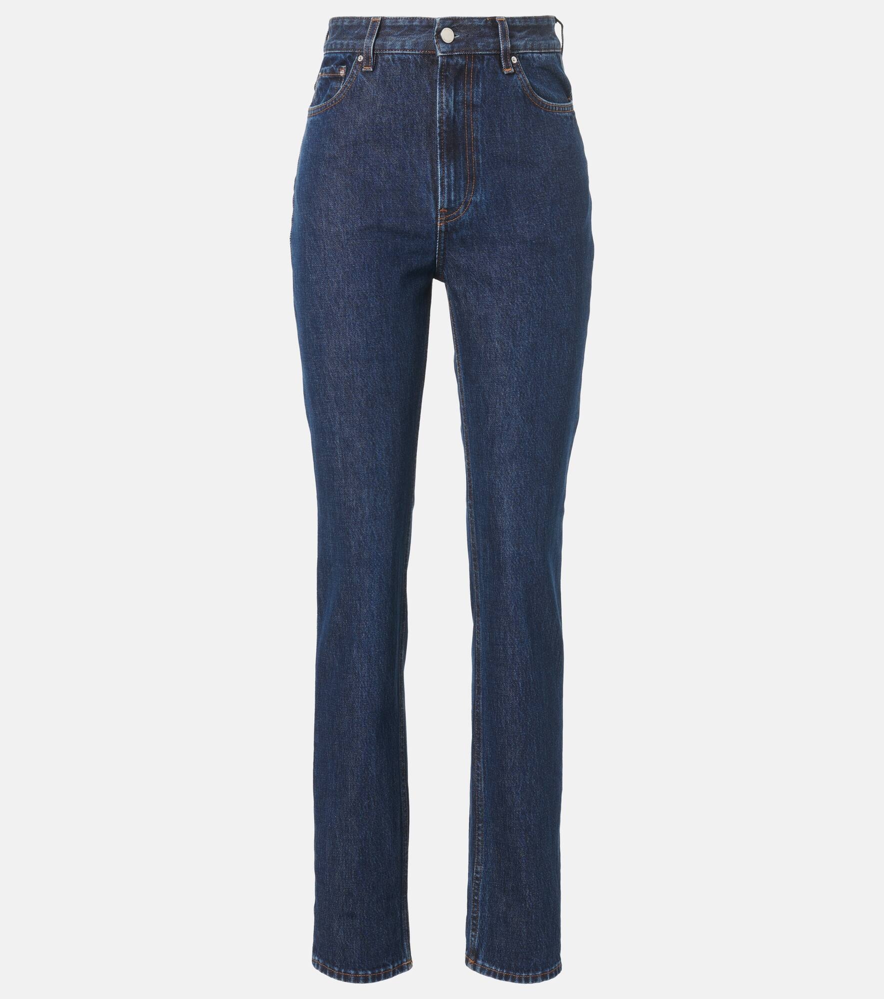 Define your dress code with styles from Toteme, a Stockholm-based brand dedicated to creating a modern uniform. These high-rise jeans are cut to a slim silhouette for a seamless addition to your everyday staples. Product Details - Material: 100% cotton - Care instructions: machine wash at 30 degrees - Made in Italy - Designer color name: Indigo - Pockets: five pockets - Closure: zip and button fastening - Item number: P01044747 Size & Fit - Fits small to size - we recommend trying one size larger - Non-stretchy fabric - Slim-leg - High-rise - The model seen in the picture is 178cm-5'10" and wearing a size 27