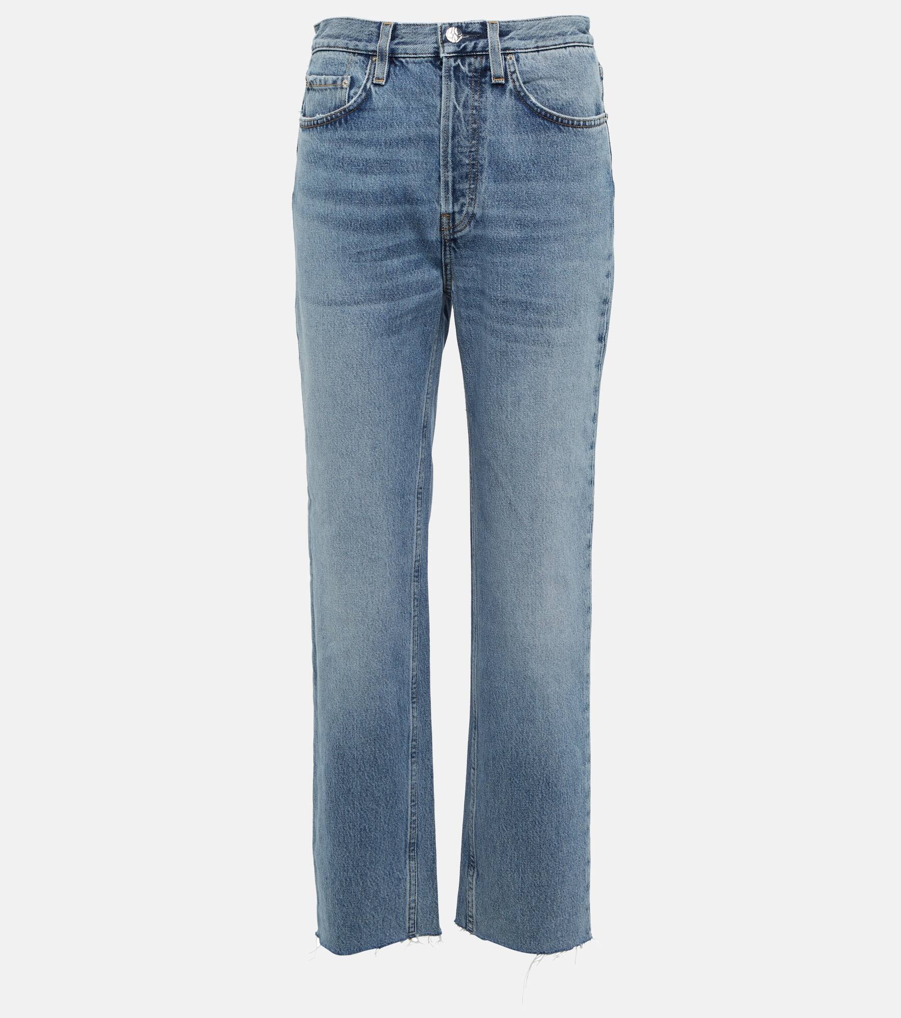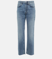 A classic cut, these Totême jeans are shaped from organically cultivated cotton denim to a high-rise, straight-leg silhouette with lightly frayed hems. Product Details - Pockets: five pockets - Belt loops - Made in Italy - Designer color name: Worn Blue - Material: 100% organic cotton - Care instructions: machine wash at 30 degrees - Frayed ends - Closure: buttoned front - Item number: P00695803 Size & Fit - True to size - Non-stretchy fabric - Straight leg - High-rise - The model seen in the picture is 178cm-5'10" and wearing a size 26