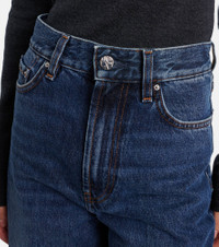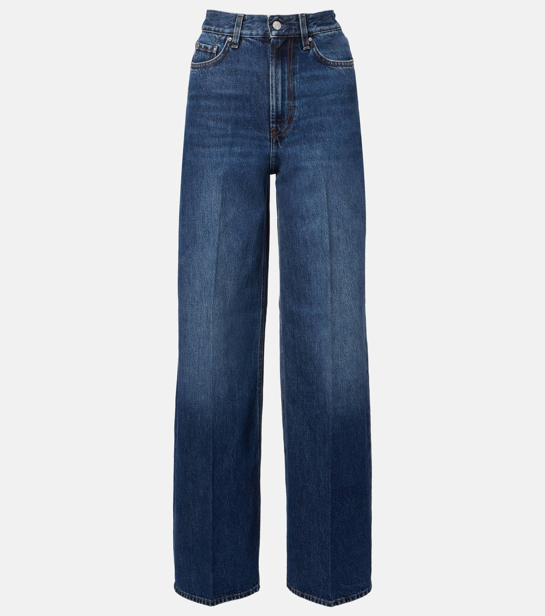 Define your dress code with styles from Toteme, a Stockholm-based brand dedicated to creating a modern uniform. Made from cotton denim, these wide-leg jeans come in a high-rise silhouette and are complete with classic five pockets. Product Details - Material: 100% cotton (organic) - Care instructions: machine wash at 30 degrees - Made in Italy - Designer color name: Dk Blue - Item color: blue - Closure: zipper fly, button fastening - Pockets: five pockets - Belt loops - Item number: P01101970 Size & Fit - Fits small to size - we recommend trying one size larger - Non-stretchy fabric - Wide-leg - High-rise - The model seen in the picture is 178cm-5'10" and wearing a size 27