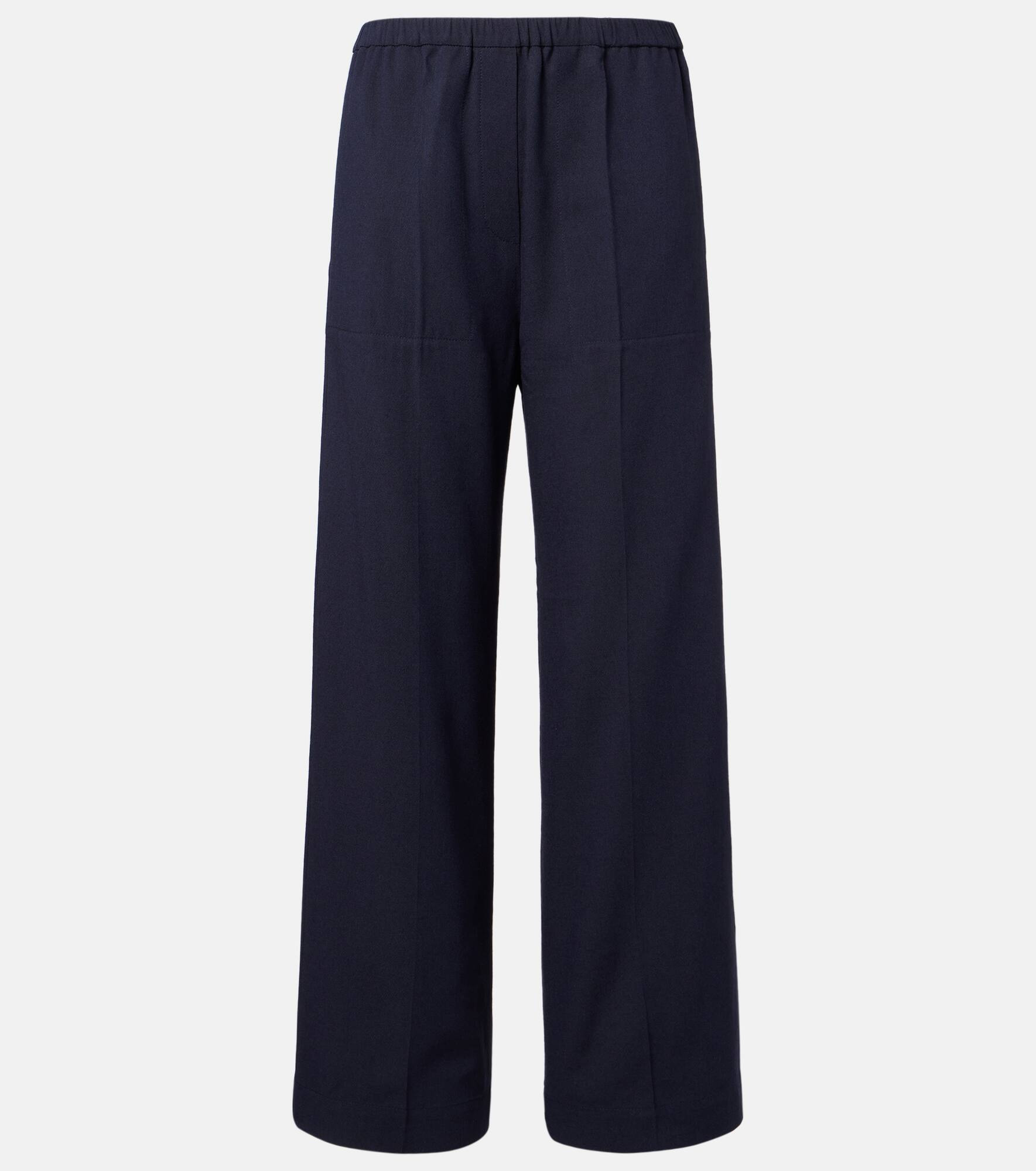 Define your dress code with styles from Toteme, a Stockholm-based brand dedicated to creating a modern uniform. The pants have a high-rise, wide-leg fit and are finished with an elasticated waistband. Product Details - Material: 90% viscose, 10% wool - Care instructions: machine wash at 30 degrees - Made in Lithuania - Designer color name: Navy - Item color: blue - Elasticated waistband - Pockets: side slit pockets, back pockets - Item number: P01101998 Size & Fit - True to size - Elasticated waist - Wide-leg - The model seen in the picture is 178cm-5'10" and wearing a size DE 34
