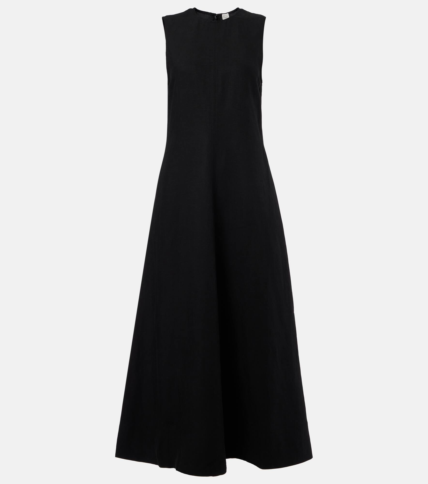 This maxi dress from Toteme is a versatile staple to wear on repeat this season. Designed in a stretchy, breathable fabric, this timeless piece features a scoop neckline and a floor-length silhouette. Product Details - Material: 75% lyocell, 25% linen - Care instructions: hand wash - Made in China - Designer color name: Black - Item color: black - Closure: zipped back - Pockets: side slit pockets - Hem: cuffed - Item number: P01075118 Size & Fit - True to size - Straight fit - Non-stretchy fabric - The model seen in the picture is 178cm-5'10" and wearing a size DE 34