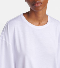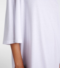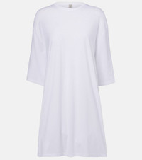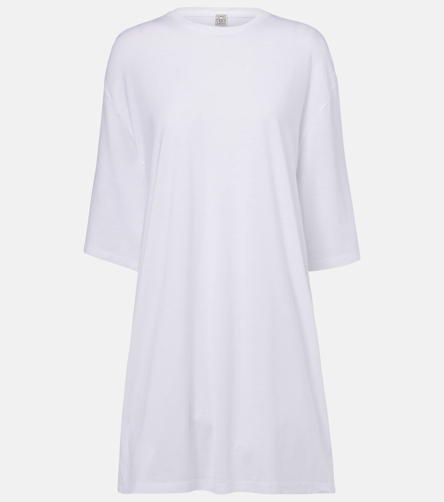 Toteme is a Stockholm-based brand dedicated to creating a modern uniform. Shaped with a relaxed silhouette and elbow sleeves, this jersey minidress is a stylish solution for an effortless look. Product Details - Material: 67% lyocell, 33% cotton (organic) - Care instructions: machine wash at 30 degrees - Made in Portugal - Designer color name: White - Item color: white - Collar: crewneck - Relaxed fit - Item number: P01075328 Size & Fit - True to size - Dropped shoulders - Oversized - Stretchy fabric - The model seen in the picture is 178cm-5'10" and wearing a size XS