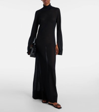 This striking maxi dress from Toteme nods to the Scandinavian utilitarian yet elegant aesthetic. Finely knitted with an opaque effect, this style features a turtleneck silhouette with slits at the cuffs for dramatic effect. Product Details - Material: 88% lyocell, 10% cashmere, 2% polyamide - Care instructions: hand wash - Made in China - Designer color name: Black - Item color: black - Collar: turtleneck - Cuff: ribbed - Hem: ribbed - Item number: P01075273 Size & Fit - True to size - Semi-sheer - Cinched waist - Slightly stretchy fabric - The model seen in the picture is 178cm-5'10" and wearing a size XS