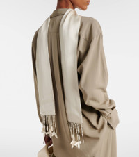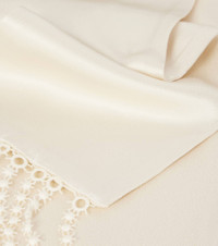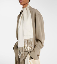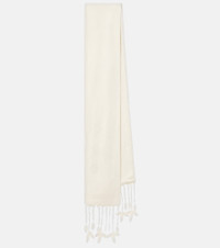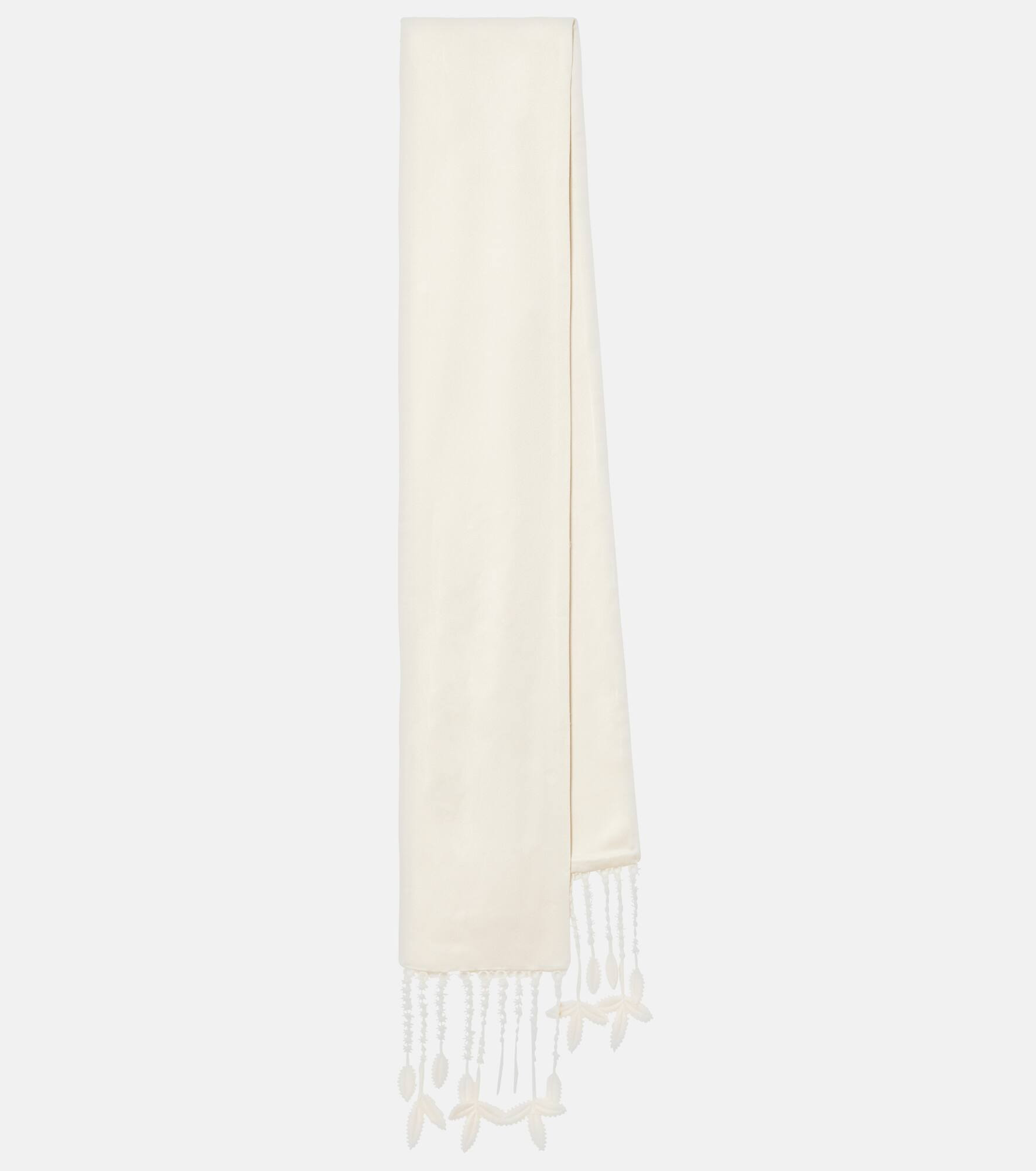 Define your dress code with styles from Toteme, a Stockholm-based brand dedicated to creating a modern uniform. This tuxedo-inspired scarf boasts a delicate lace trim. Product Details - Material: 100% viscose - Care instructions: hand wash - Made in China - Designer color name: Snow - Item color: white - Trim: 100% polyester (recycled) - Item number: P01093315 Size & Fit - Length 142cm-56" - Width 12cm-4.5" - Length of fringe 14cm-5.5"