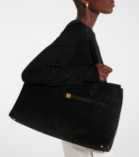 Lounge large leather-trimmed suede tote Black