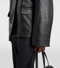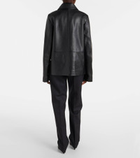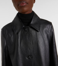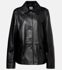 Define your dress code with styles from Toteme, a Stockholm-based brand dedicated to creating a modern uniform. Showcasing meticulous craftsmanship, this jacket is made from soft leather and features a pointed collar. Product Details - Material: 100% leather - Care instructions: specialist clean - Made in Turkey - Designer color name: Black - Item color: black - Lining: 100% viscose - Lining II: 100% cotton - Closure: buttoned front - Pockets: flap pockets - Item number: P01102006 Size & Fit - True to size - Designed for a loose fit - Non-stretchy fabric - Falls below the hip - The model seen in the picture is 178cm-5'10" and wearing a size DE 34
