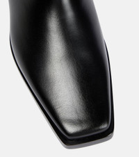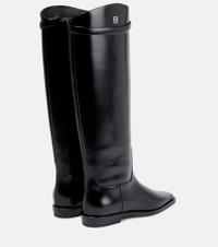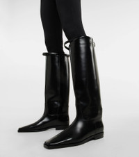 Made from smooth black calfskin leather, these knee-high boots draw on equestrian styles. The pair features square toes, a strap at the top of the shaft, and a silver Totême logo appliqué. Product Details - Lining: leather - Sole: leather insole, rubber sole - Toe shape: square toe - Upper: calf leather - Comes with a box - Designer color name: Black - Made in Italy - Comes with dust bag - Item number: P00722836 Size & Fit - Fits small to size - we recommend trying one size larger - European sizes - 2,5cm-1" heel (size EU 38) - 1cm-0.5" platform (size EU 38) - 41cm-16" shaft height (size EU 38) - 40cm-15.5" shaft width (size EU 38) - shaft width measured on largest part of boot