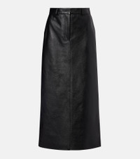 Define your dress code with styles from Toteme, a Stockholm-based brand dedicated to creating a modern uniform. This midi skirt has clean lines and supple leather construction. Product Details - Material: 100% calf leather - Care instructions: specialist clean - Made in Turkey - Designer color name: Black - Item color: black - Lining: 100% viscose - Pockets: slant pockets, back pockets - Belt loops - Closure: zipper fly, button and hook fastenings - Short vent - Item number: P01136652 Size & Fit - True to size - Non-stretchy fabric - The model seen in the picture is 178cm-5'10" and wearing a size DE 34