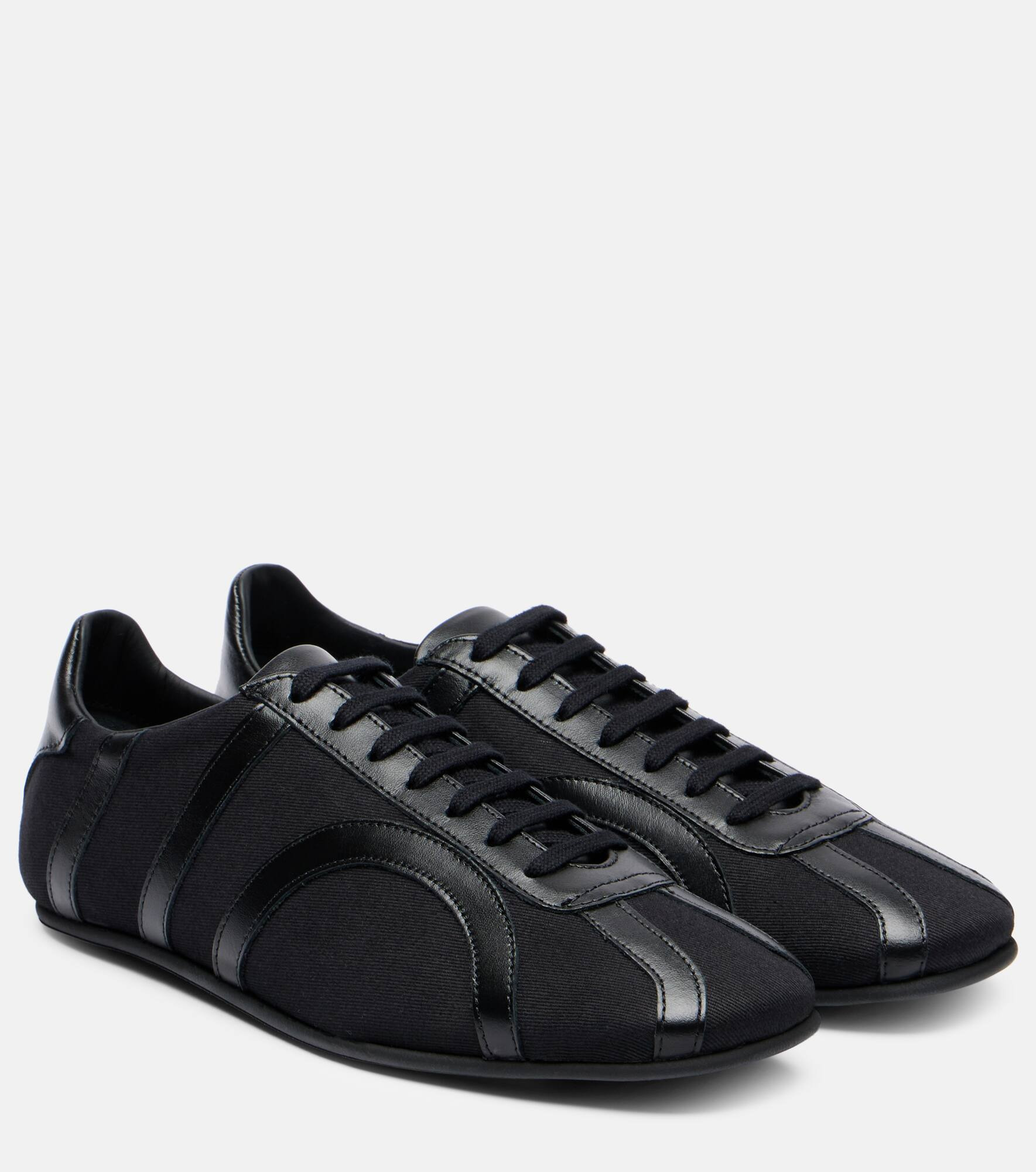 Leather-trimmed cotton-canvas sneakers Black