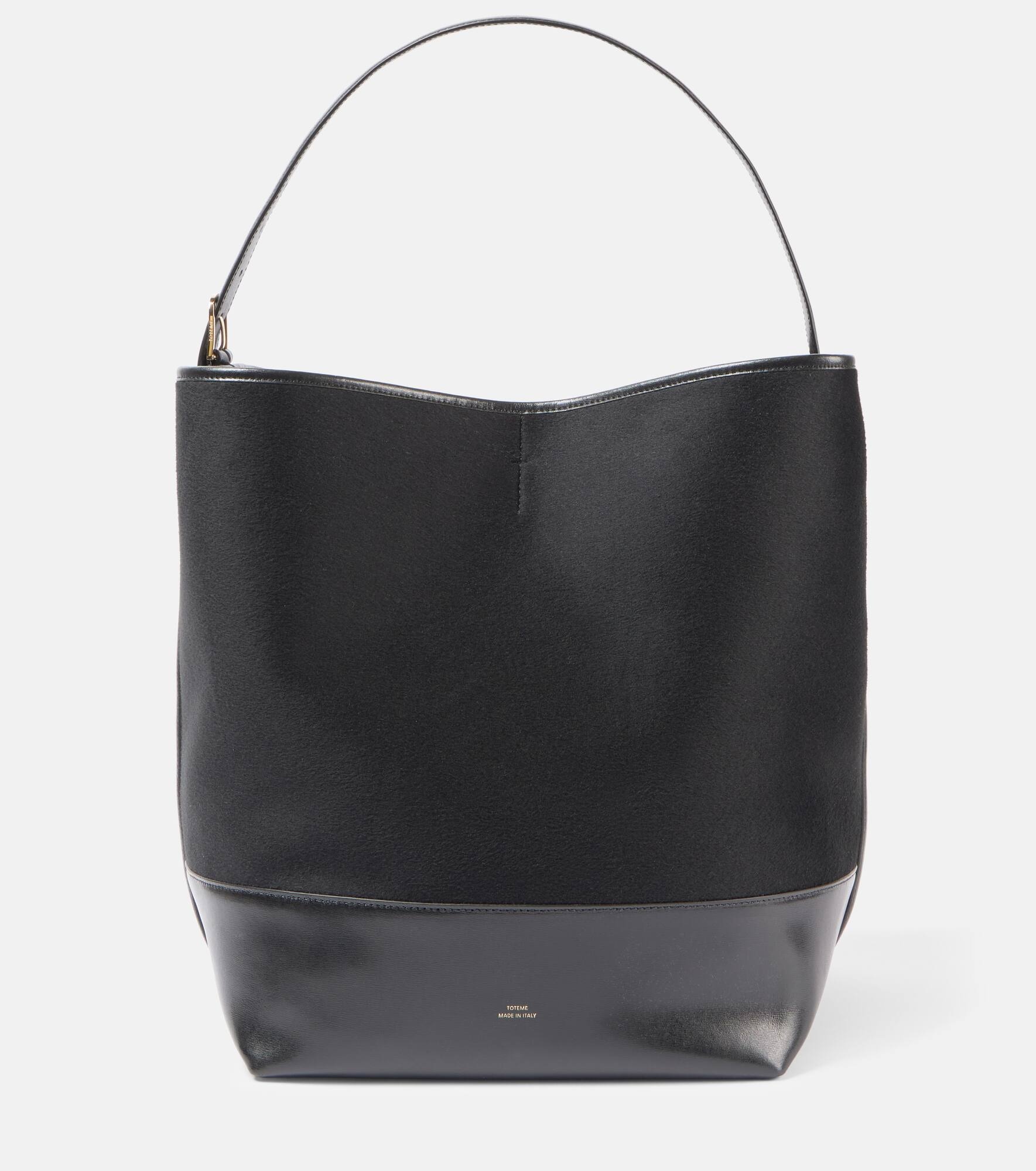 Product Details - Material: wool - Lining: fabric - Made in Italy - Designer color name: Black 001 - Trim: leather - Includes: dust bag - Adjustable shoulder strap - Closure: hook fastening - Hardware color: gold - Internal details: internal slot pockets - Item number: P00998863 Size & Fit - Height 37cm-14.5" - Max. width 50cm-19.5" - Max. depth 27cm-10.5" - Min. length shoulder strap 36cm-14" - Max. length shoulder strap 51cm-20"