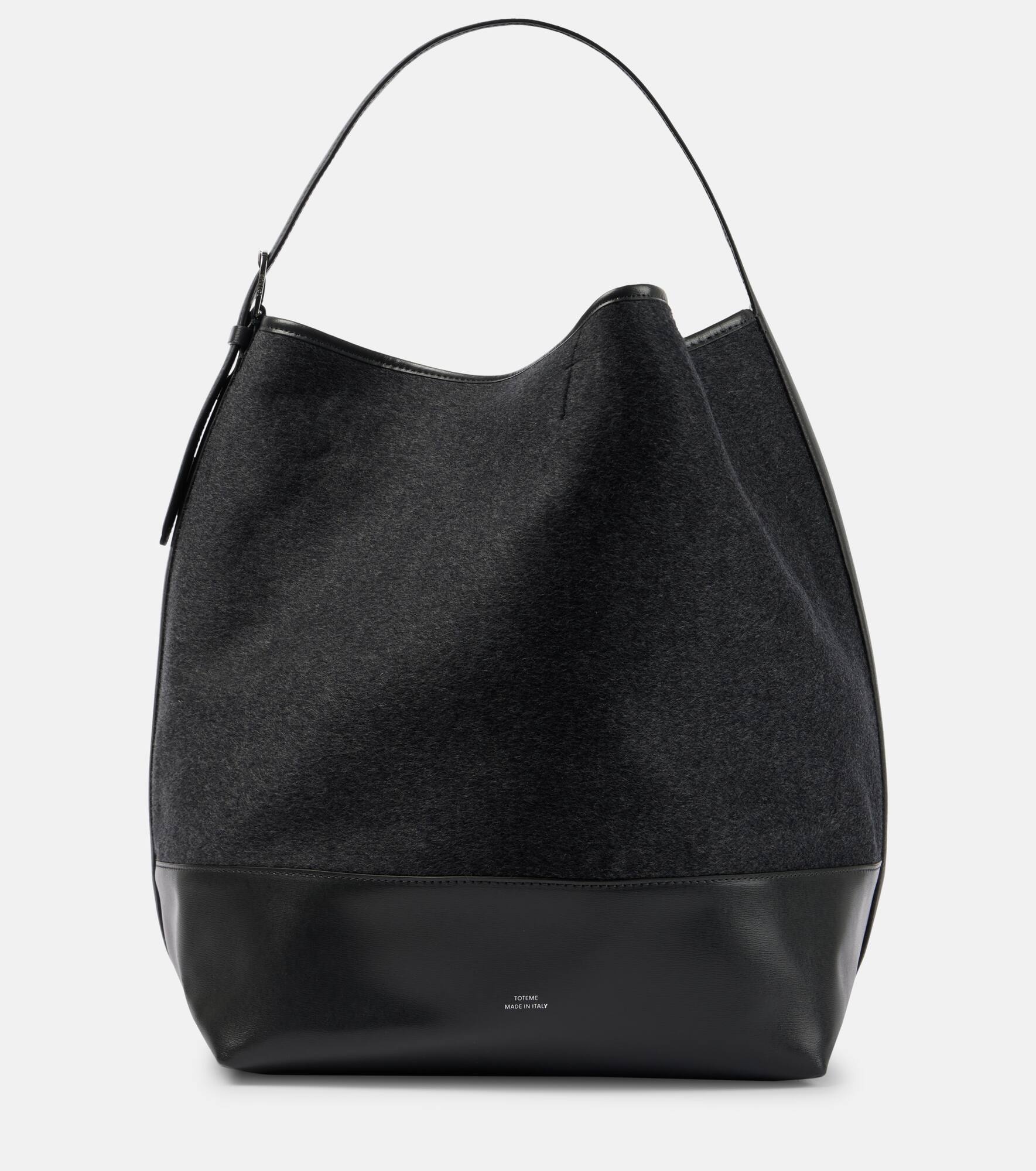 Leather-trimmed wool doublé tote bag