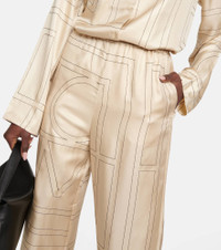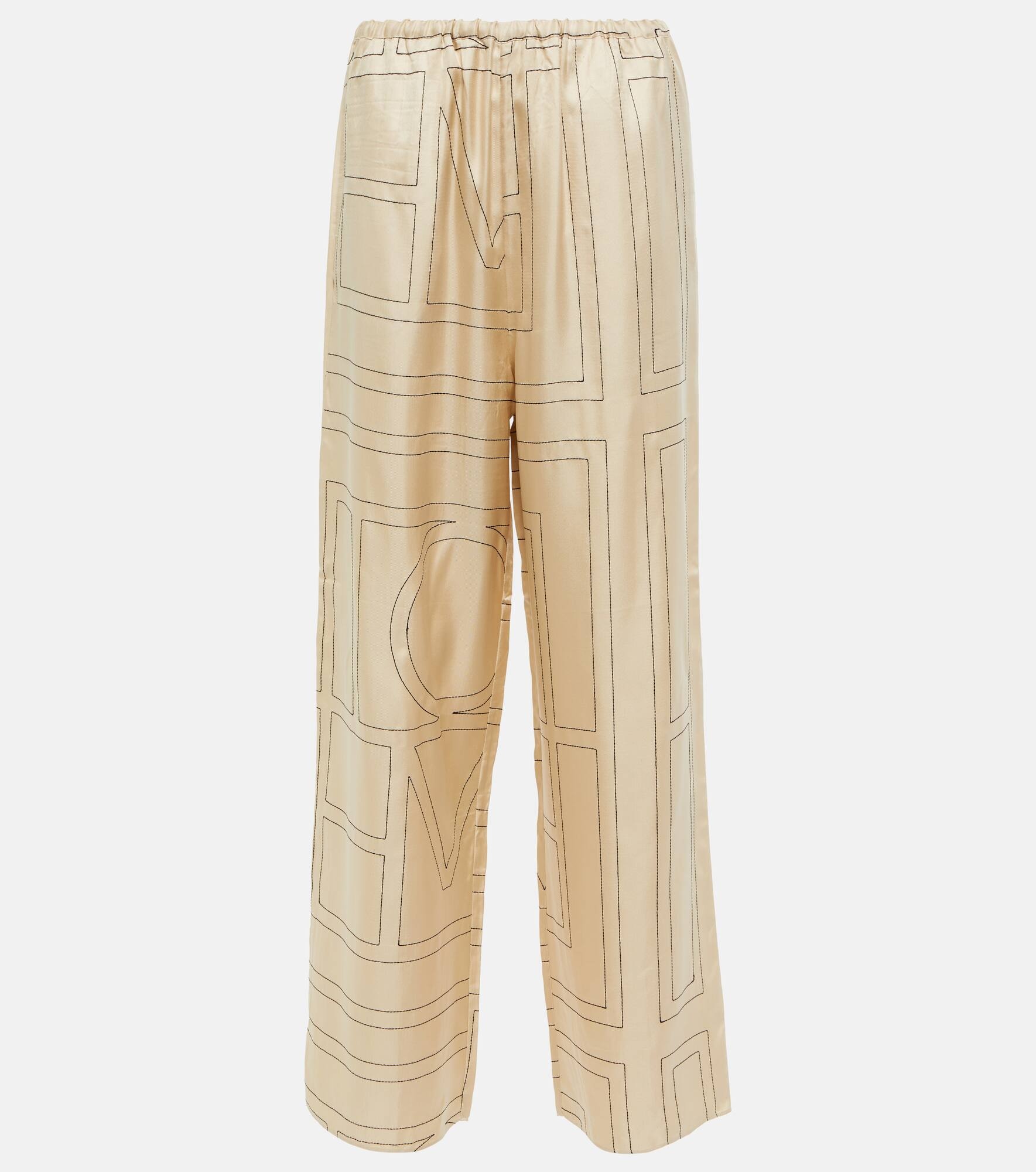 Totême's magnified monogram spotlights the Swedish label's affinity for geometric lines. These printed silk pants have a relaxed, mid-rise elasticated waist and a cropped straight length. Product Details - Made in China - Pockets: side slit pockets - Material: 100% silk - Designer color name: Ivory Monogram - Care instructions: dry clean - Item number: P00789627 Size & Fit - True to size - Elasticated waist - Non-stretchy fabric - Wide-leg - Inseam length approx: 73cm-28.5" - The model seen in the picture is 178cm-5'10" and wearing a size DT 34