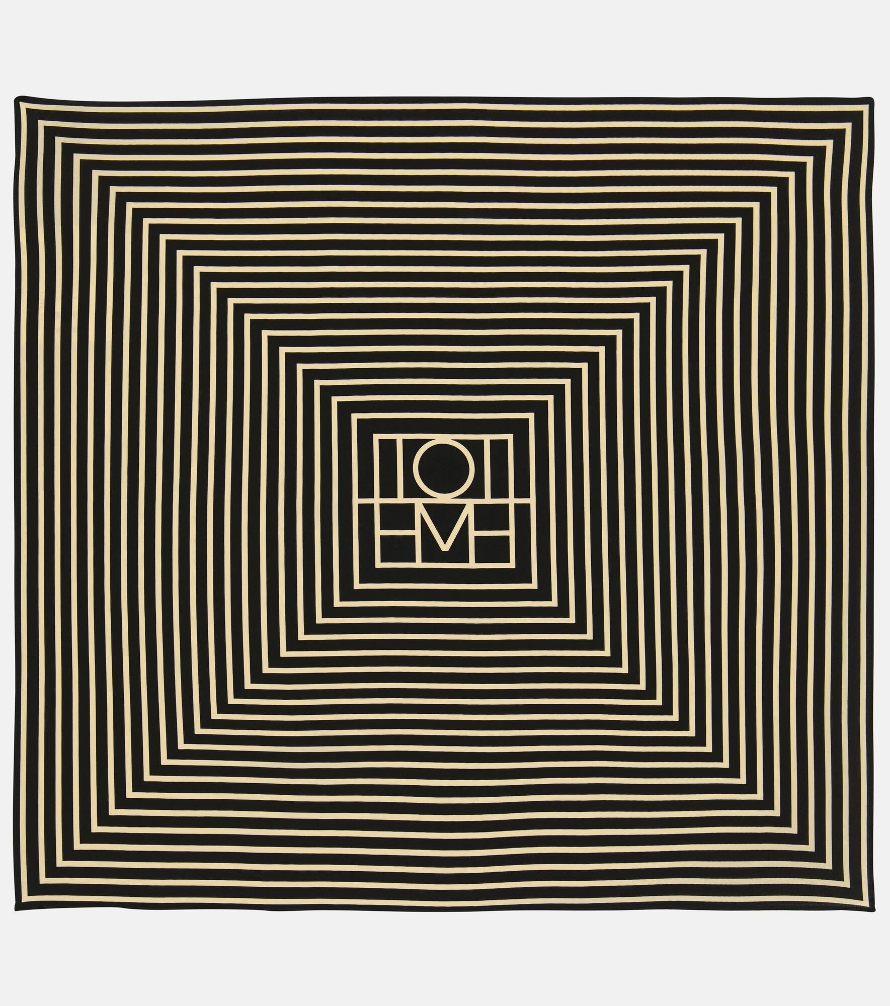 This oversized scarf from Totême is made from pure silk fibers for a lightweight and smooth feel. It has a striking illusionist print surrounding a logo center. Product Details - Care instructions: hand wash - Material: 100% silk - Made in China - Item number: P00693304 Size & Fit - Length 58cm-23" - Width 56cm-22"
