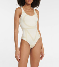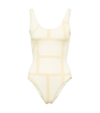 Swedish label Totême's magnified monogram is both bold and unassuming across this beige swimsuit. Shaped to a flattering scoop-back silhouette with high-cut legs, it's made from four-way stretch swim fabric which is UV ray protected. - material: 73% polyamide, 27% elastane - lining: 73% polyamide, 27% elastane, fully lined - care instructions: machine wash at 30 degrees - Made in Portugal - Designer colour name: Sand Monogram
