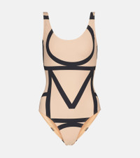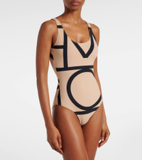 Swedish label Toteme's magnified monogram is both bold and unassuming across this beige swimsuit. Shaped to a classic low scoopback silhouette with flattering high-cut legs, it's made from four-way stretch swim fabric which is UV ray protected for fuss-free vacationing. Team yours with oversized sunglasses. Product Details - Lining: 73% polyamide, fully lined, 27% elastane - Care instructions: machine wash at 30 degrees - Material: 27% elastane, 73% polyamide - Designer color name: Monogram - Made in Portugal - Item number: P00572742 Size & Fit - True to size - For curvier figures, we recommend taking one size up - Petite sizing - High-cut leg - The model seen in the picture is 178cm-5'10", cup size B, and wearing a size XS