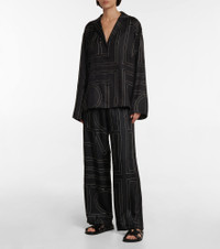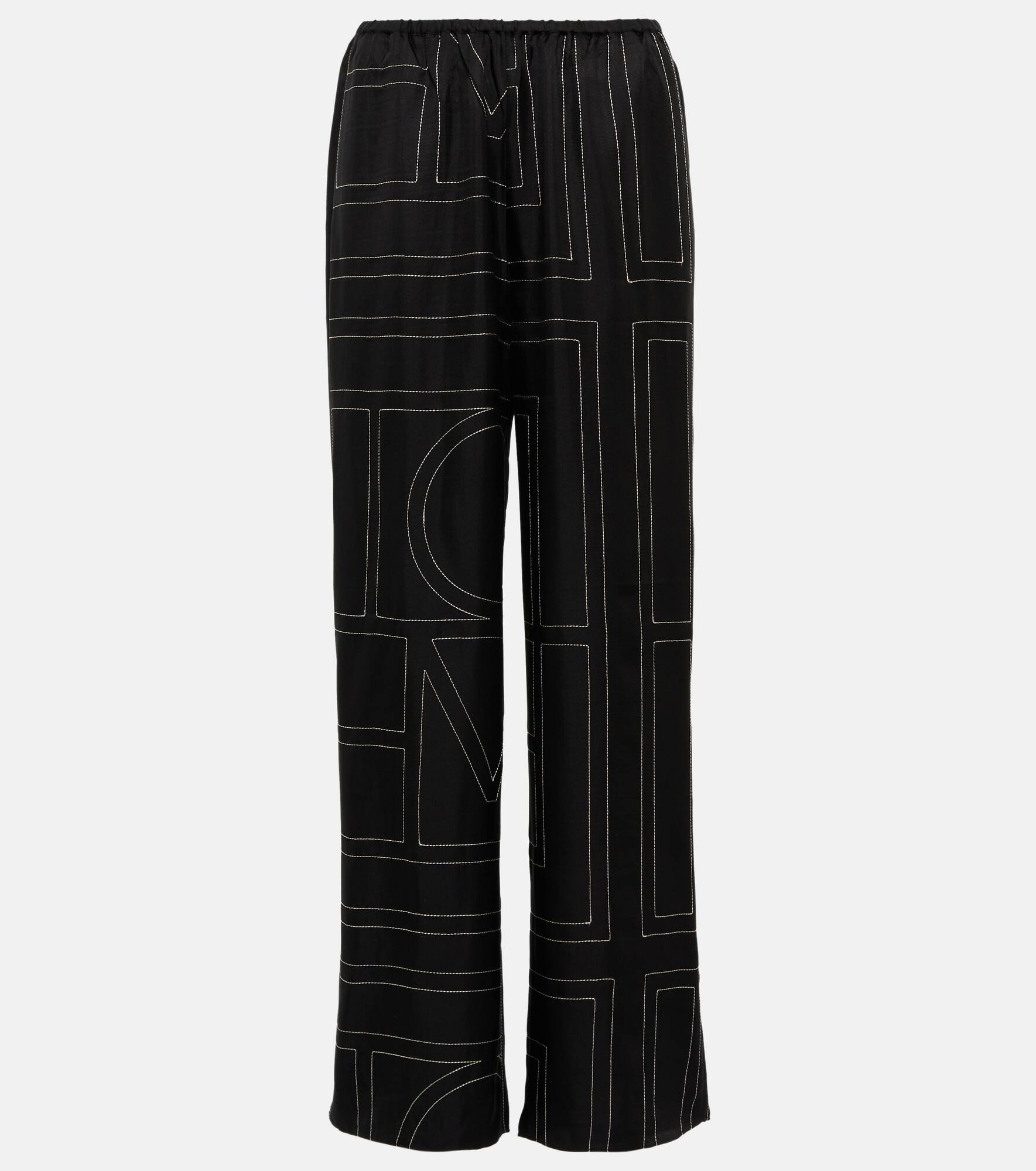 Envelop yourself in the understated luxury of these black pants from Totême. Made from silk twill, the pajama-style pair has an elasticated waistband, wide leg, and an enlarged all-over logo design. Product Details - Made in China - Pockets: side slit pockets - Designer color name: Black Monogram - Elasticated waistband - Material: 100% silk - Item number: P00695758 Size & Fit - True to size - Elasticated waist - Lightweight material - Wide-leg - High-waisted - The model seen in the picture is 178cm-5'10" and wearing a size DT 34