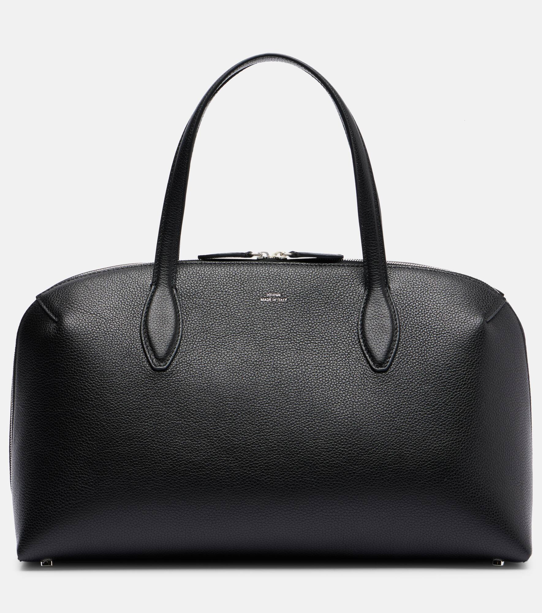 Define your dress code with styles from Toteme, a Stockholm-based brand dedicated to creating a modern uniform. Made in Italy from black leather, the Lounge tote bag arrives in Medium proportions with silver-toned hardware. Product Details - Material: leather - Lining: leather - Made in Italy - Designer color name: Black - Item color: black - Closure: zipped top - Top handles, Detachable shoulder strap - Protective feet - Internal details: internal slot pockets - Item number: P01093297 Size & Fit - Height 22cm-8.5" - Width 36.5cm-14.5" - Depth 13cm-5" - Length of handles 40cm-15.5" - Adjustable shoulder strap - Max. length shoulder strap 106cm-41.5"