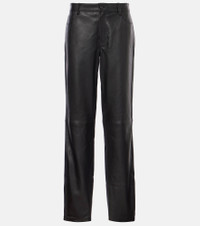 Mid-rise leather straight pants