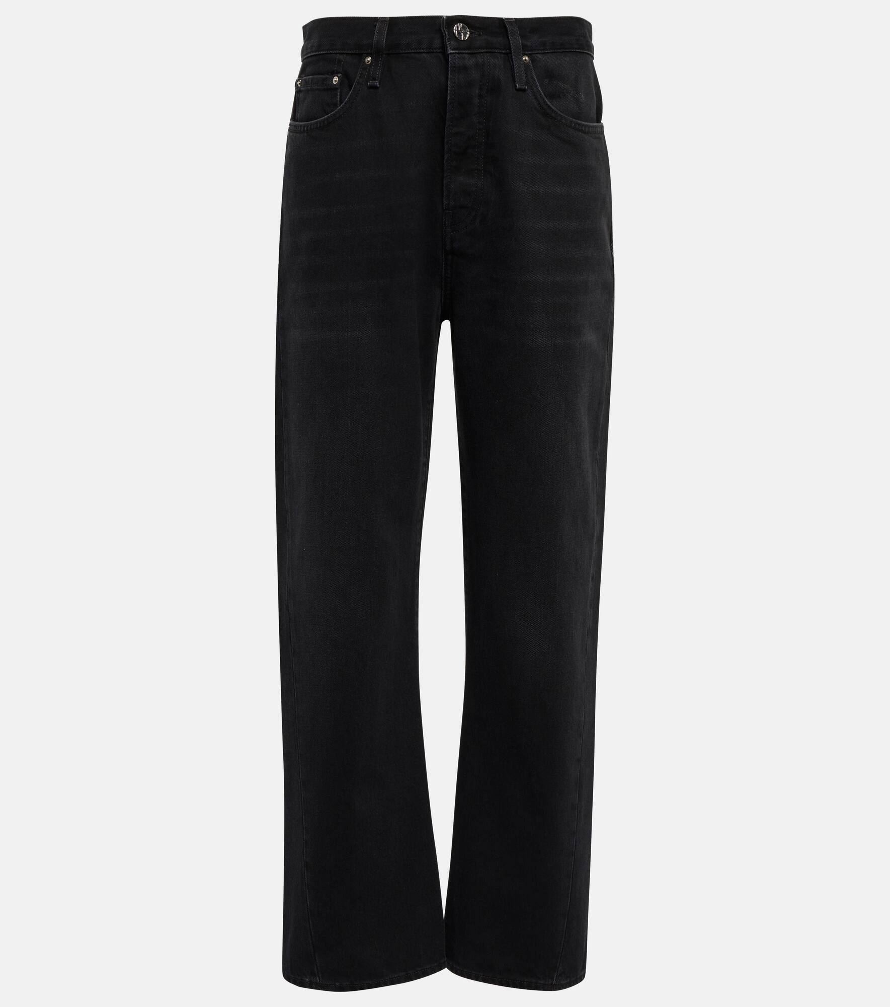 Endlessly versatile, these faded black jeans from Totême are the ultimate repeat piece. The mid-rise style features a relaxed straight-leg silhouette and the brand's signature twisted side seams down the legs. Product Details - Pockets: five pockets - Belt loops - Made in Italy - Designer color name: Faded Black - Care instructions: machine wash at 30 degrees - Material: 100% cotton - Closure: button fastening - Item number: P00756753 Size & Fit - True to size - Mid-weight material - Non-stretchy fabric - Straight leg - High-rise - The model seen in the picture is 178cm-5'10" and wearing a size 26