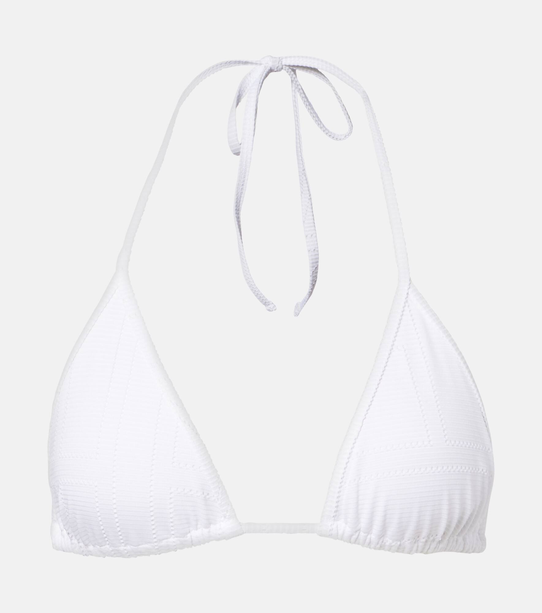Make a distinctive entrance at the beach in this bikini top from Toteme. This triangle style is made from white pointelle fabric, replicating the brand's monogram all over. Product Details - Material: 95% polyamide, 5% elastane - Care instructions: machine wash at 30 degrees - Made in Portugal - Designer color name: White - Item color: white - Lining: 50% polyamide (recycled), 34% polyamide, 16% elastane - Closure: self-ties - Item number: P01075123 Size & Fit - True to size - Unpadded Top - The model seen in the picture is 178cm-5'10", cup size B, and wearing a size XS