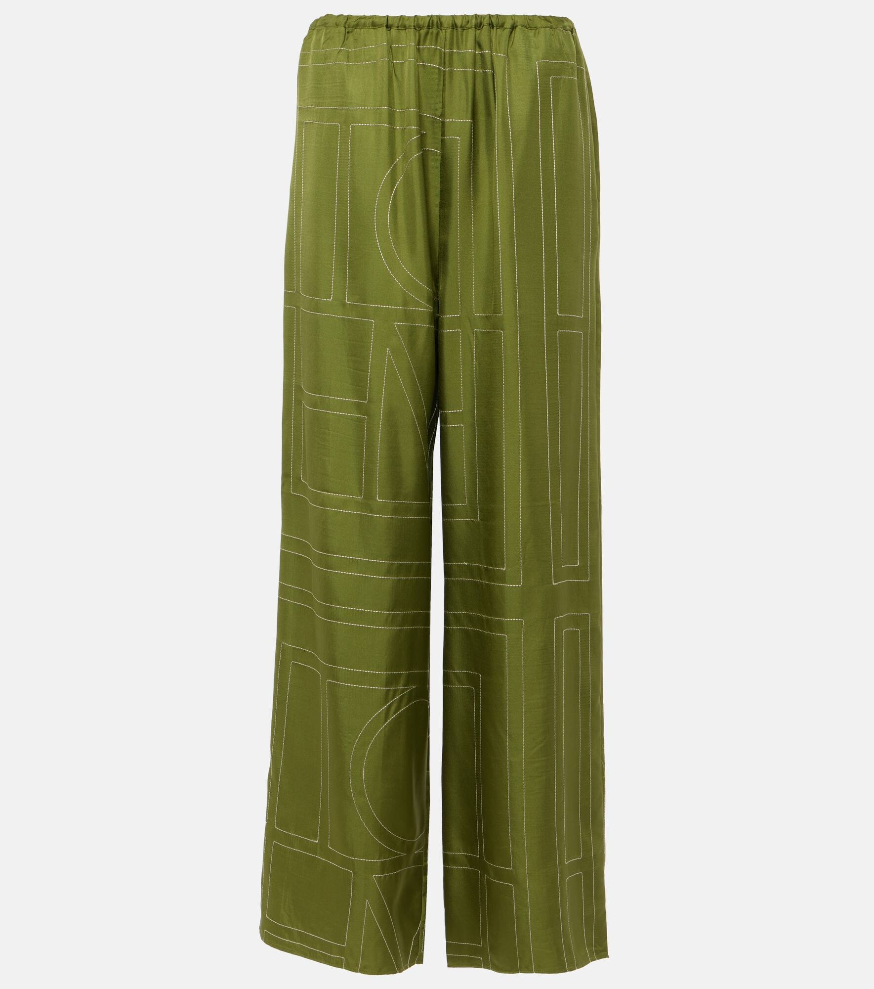 Monogram silk pj bottoms laurel