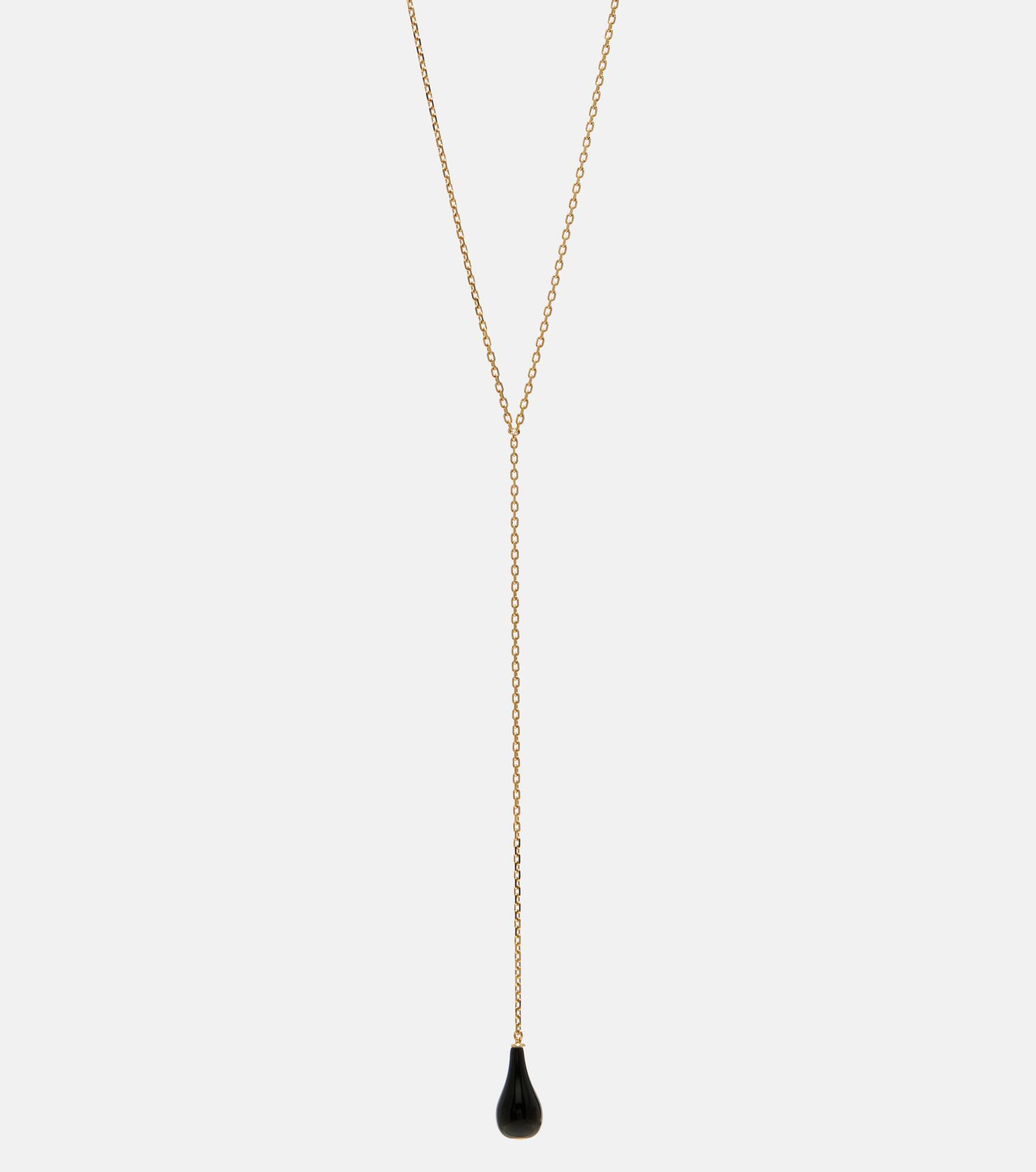 This necklace by Toteme features a Y-shaped chain crafted in Italy from 18kt gold-plated brass. This accessory is finished with an onyx pendant embellished with a Swarovski® crystal for a glamorous touch. Product Details - Material: 18kt gold-plated brass, onyx, Swarovski crystals - Made in Italy - Item color: gold, black - Includes: dust bag, box - Item number: P01082798 Size & Fit - Length when open 49/54cm-19.5/21.5" - Pendant length 22cm-8.5" - Pendant width 1cm-0.5"