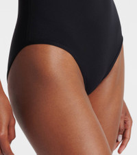 Toteme proves that simplicity and impact go hand in hand with this swimsuit. The monochrome design features an elegant silhouette with a plunging neckline and an alluring open back. Product Details - Material: 43% polyamide (recycled), 29% polyamide, 28% elastane - Care instructions: machine wash at 30 degrees - Made in Portugal - Designer color name: Black - Item color: black - Lining: 50% polyamide (recycled), 32% polyamide, 18% elastane - Item number: P01075347 Size & Fit - True to size - Unpadded Top - Medium-cut leg - The model seen in the picture is 178cm-5'10", cup size B, and wearing a size XS