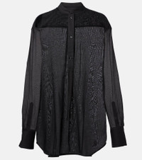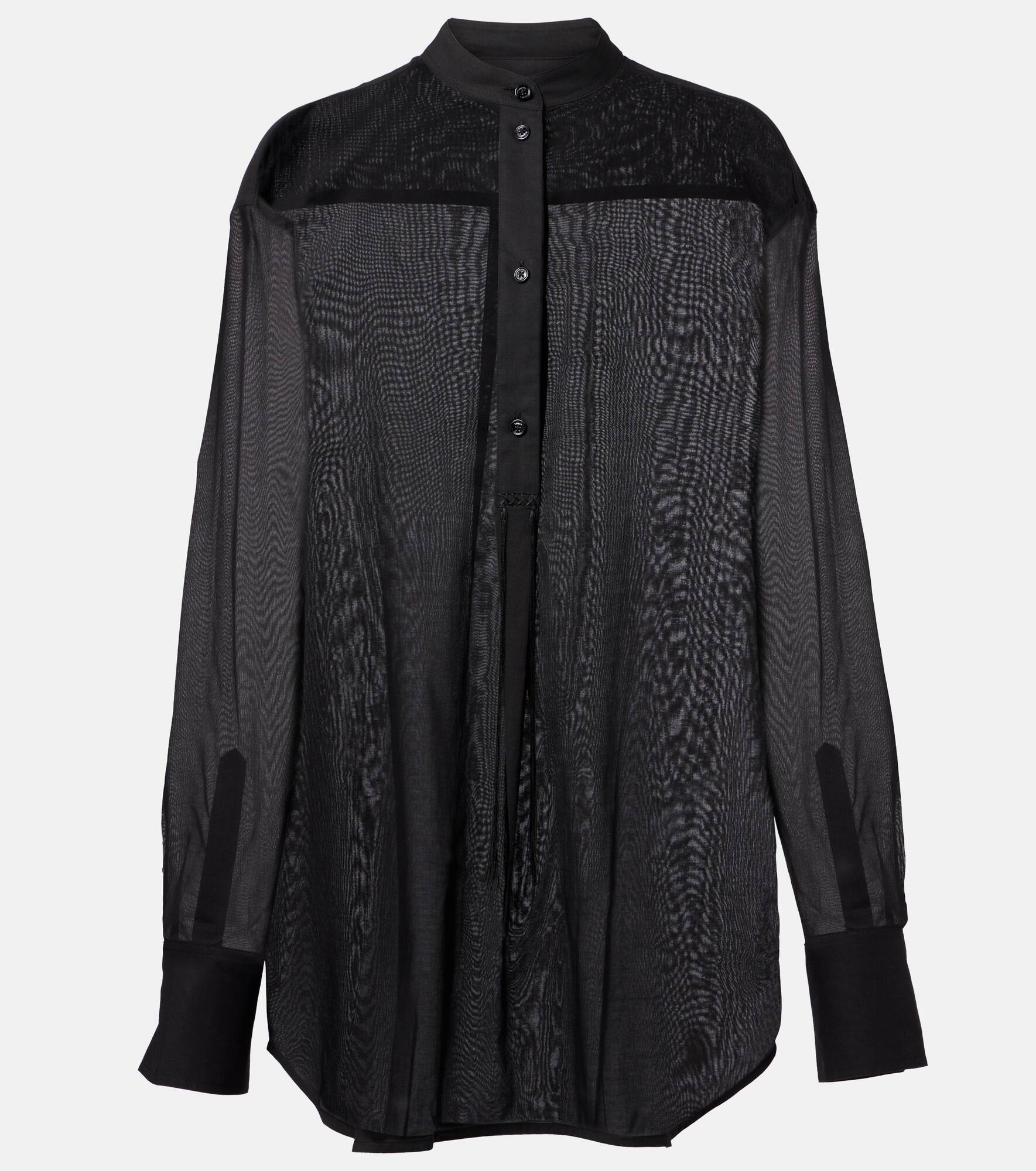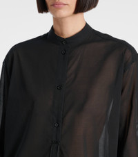 Define your dress code with styles from Toteme, a Stockholm-based brand dedicated to creating a modern uniform. This semi-sheer shirt is cut from cotton voile to an oversized silhouette, fitted with a stand collar, buttoned half placket, and front tassels. Product Details - Material: 100% cotton (organic) - Care instructions: dry clean - Made in Turkey - Designer color name: Black - Item color: black - Closure: buttoned front - Item number: P01040508 Size & Fit - True to size - Dropped shoulders - Semi-sheer - Oversized - Non-stretchy fabric - Falls below the hip - The model seen in the picture is 178cm-5'10" and wearing a size DE 34