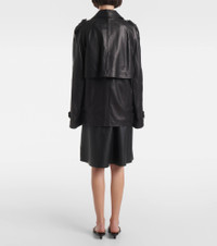 Define your dress code with styles from Toteme, a Stockholm-based brand dedicated to creating a modern uniform. Crafted in the form of a trench coat, this jacket is cut from leather to an oversized fit, complete with shoulder, cuff and waist belt detailing. Product Details - Material: 100% leather - Care instructions: specialist clean - Made in Turkey - Designer color name: Black - Closure: double-breasted (four buttons) - Pockets: side slit pockets - Detachable belt - Lining: 100% viscose - Buttoned cuffs - Item number: P01040581 Size & Fit - True to size - Designed for a loose fit - Adjustable hem - Non-stretchy fabric - Falls below the hip - The model seen in the picture is 178cm-5'10" and wearing a size DT 34