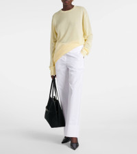 Crafted from a light, semi-sheer knit, this sweater from Toteme features a chic, oversized silhouette. The longline design is finished with a classic crew neckline and ribbed trims for an effortlessly sophisticated look. Product Details - Material: 88% lyocell, 10% cashmere, 2% polyamide - Care instructions: hand wash - Made in China - Designer color name: Straw - Item color: yellow - Collar: crewneck - Cuff: ribbed - Hem: ribbed - Oversized fit - Item number: P01075206 Size & Fit - True to size - Semi-sheer - Designed for a loose fit - Slightly stretchy fabric - Falls below the hip - The model seen in the picture is 178cm-5'10" and wearing a size XS