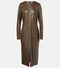 Paneled leather midi dress