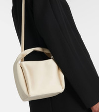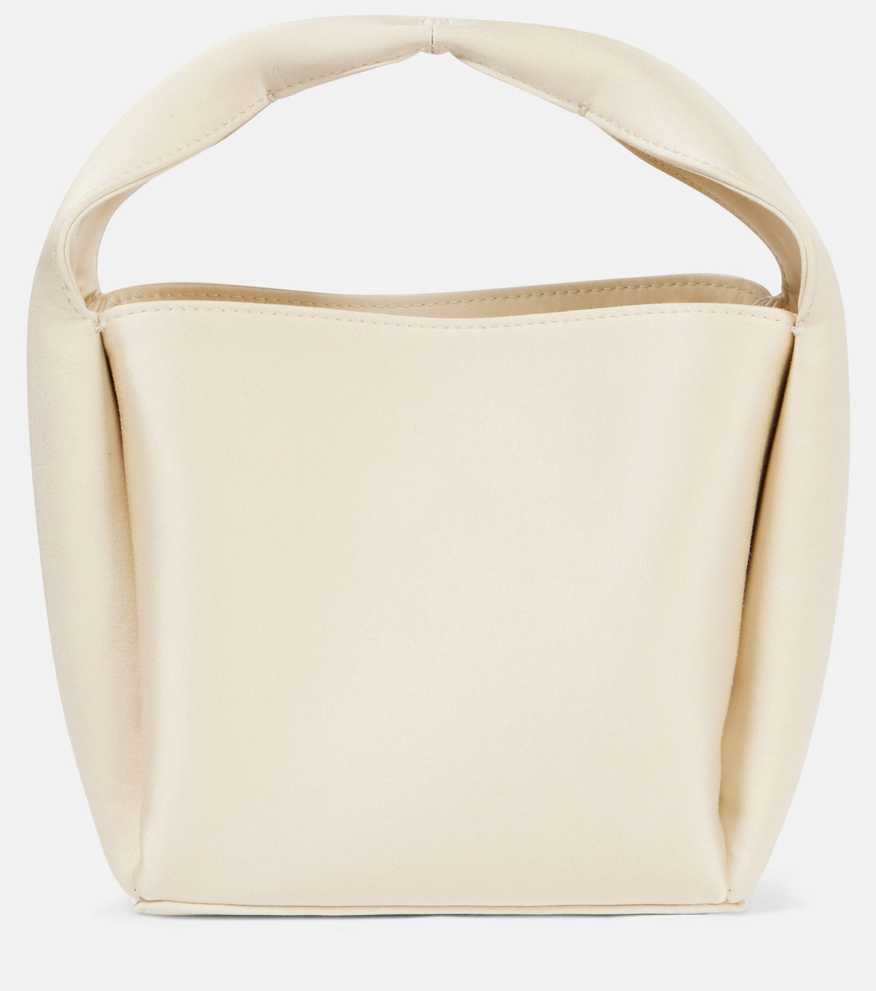 Define your dress code with styles from Toteme, a Stockholm-based brand dedicated to creating a modern uniform. This Petite bucket bag is crafted from satin and comes with a detachable strap for versatile carrying. Product Details - Material: fabric - Lining: fabric - Made in Italy - Designer color name: Ecru - Item color: ivory - Hardware color: silver - Closure: lobster-clasp fastening - Top handle, Detachable shoulder strap - Item number: P01002067 Size & Fit - Height 14cm-5.5" - Width 19,5cm-7.5" - Max. depth 13cm-5" - Length of handle 26cm-10" - Length shoulder strap 92cm-36"
