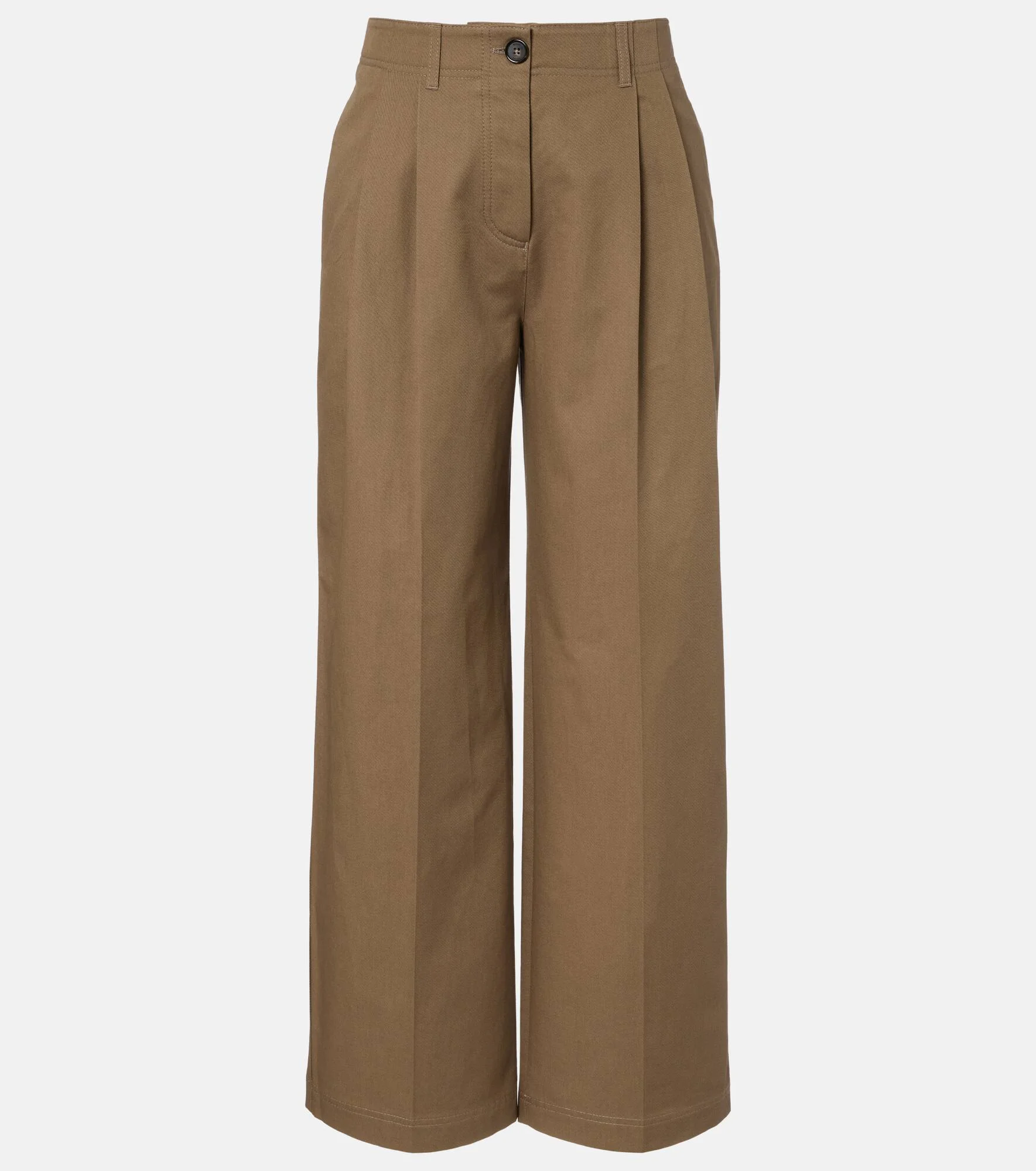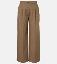 Define your dress code with styles from Toteme, a Stockholm-based brand dedicated to creating a modern uniform. These pants are crafted from pure cotton into a wide-leg silhouette with front pleats. Product Details - Material: 100% cotton - Care instructions: machine wash at 30 degrees - Made in Portugal - Color: brown - Designer color name: Hazel - Lining: 100% cotton - Closure: concealed button placket - Belt loops - Pockets: side slit pockets, back pockets - Item number: P01150258 Size & Fit - Fits large to size - we recommend trying one size smaller - Non-stretchy fabric - Wide-leg - High-waisted - The model seen in the picture is 178cm-5'10" and wearing a size DE 32
