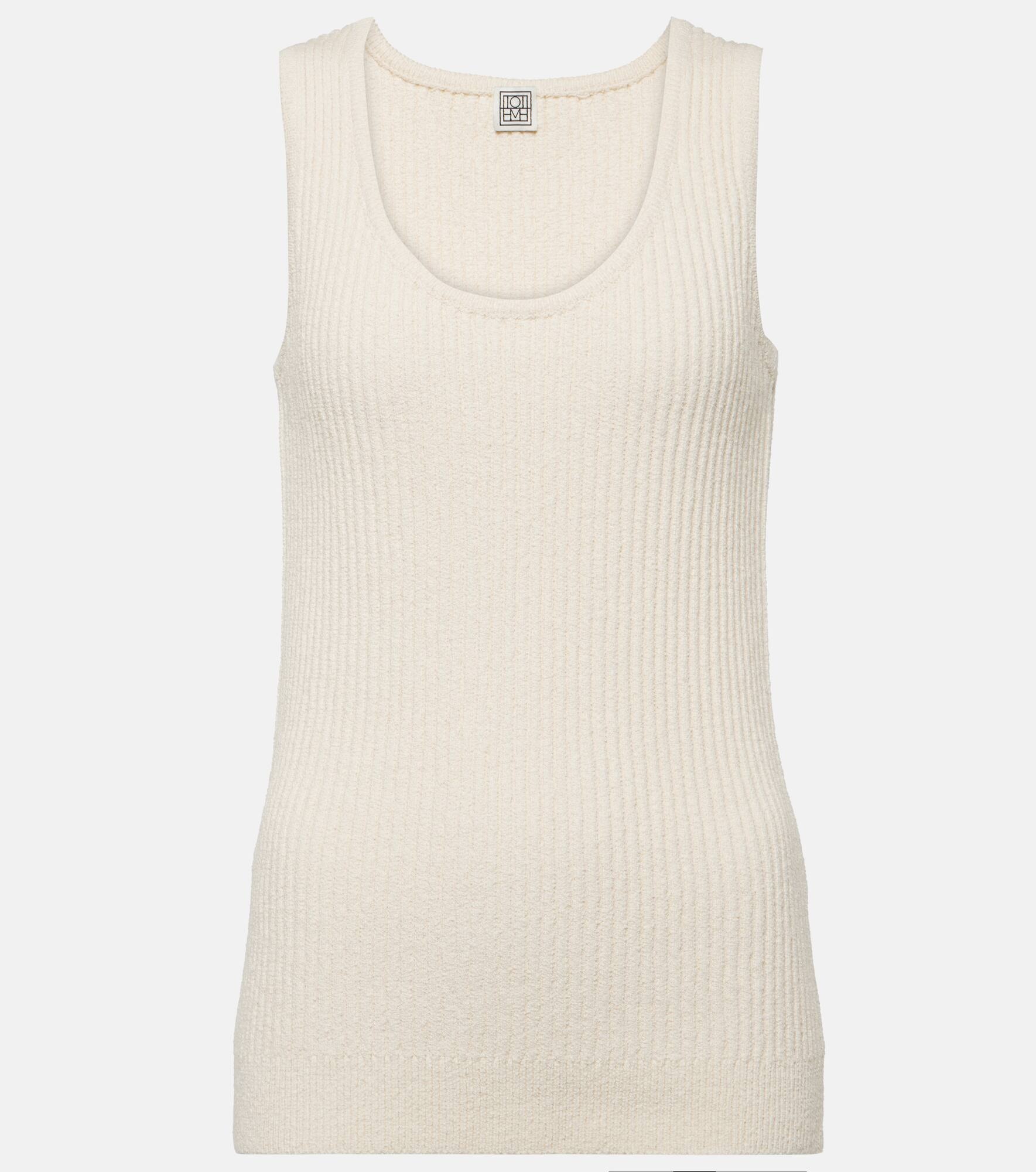 Ribbed-knit cotton-blend bouclé tank top