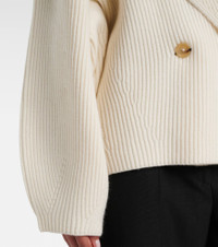 Define your dress code with styles from Toteme, a Stockholm-based brand dedicated to creating a modern uniform. Crafted from a ribbed-knit wool blend, this sculptural cardigan features a slightly oversized fit and rounded sleeves, making it an ideal piece for layering. Product Details - Material: 95% wool, 5% polyamide - Care instructions: do not wash - Made in China - Designer color name: Milk - Item number: P00993396 Size & Fit - True to size - Dropped shoulders - Oversized - Stretchy fabric - Falls to the hip - The model seen in the picture is 178cm-5'10" and wearing a size XS