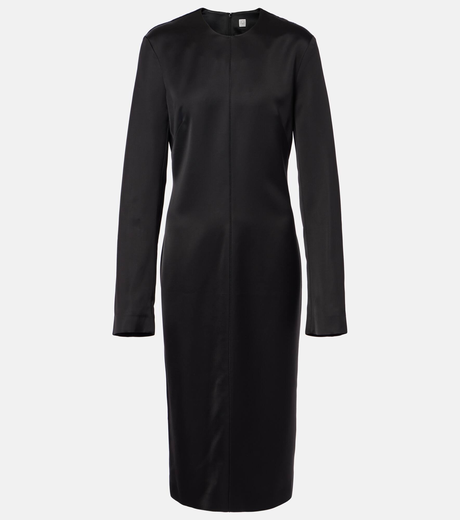 Define your dress code with styles from Toteme, a Stockholm-based brand dedicated to creating a modern uniform. A chic day-to-night hero, this midi dress is made from lustrous satin with a concealed back zipper. Product Details - Material: 100% viscose - Care instructions: dry clean - Made in Portugal - Designer color name: Black - Closure: invisible zipper - Item number: P01040548 Size & Fit - True to size - Cinched waist - Non-stretchy fabric - The model seen in the picture is 178cm-5'10" and wearing a size DT 34