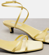 Stockholm-based brand Toteme is dedicated to creating a modern uniform. These breezy sandals have criss-crossing satin straps and comfortable leather soles. Product Details - Upper: fabric - Lining: leather, fabric - Sole: leather insole and sole - Toe shape: square open toe - Made in Italy - Includes: shoe box - Designer color name: Pale Yellow 267 - Item color: yellow - Item number: P01041909 Size & Fit - True to size - Half sizes please take the next size down - European sizes - 3,5cm-1.5" heel (size EU 38)