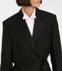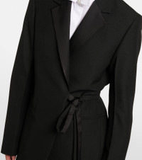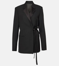 Product Details - Material: 55% polyester, 45% wool - Care instructions: dry clean - Made in Romania - Designer color name: Black - Lining: 100% viscose - Pockets: slit pockets - Closure: self-ties - Item number: P00993391 Size & Fit - True to size - Shoulder pad inserts - Loose fit, comes with belt - Non-stretchy fabric - Falls below the hip - The model seen in the picture is 178cm-5'10" and wearing a size DT 34