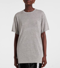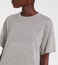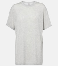 This T-shirt from Toteme features a relaxed fit with dropped shoulders and a semi-sheer finish. The lightweight design makes it a go-to for warm days. Product Details - Material: 89% lyocell, 10% cashmere, 1% polyamide - Care instructions: hand wash - Made in China - Designer color name: Grey - Item color: gray - Collar: crewneck - Hem: ribbed - Relaxed fit - Item number: P01075210 Size & Fit - True to size - Dropped shoulders - Semi-sheer - Designed for a loose fit - Slightly stretchy fabric - Falls below the hip - The model seen in the picture is 178cm-5'10" and wearing a size XS